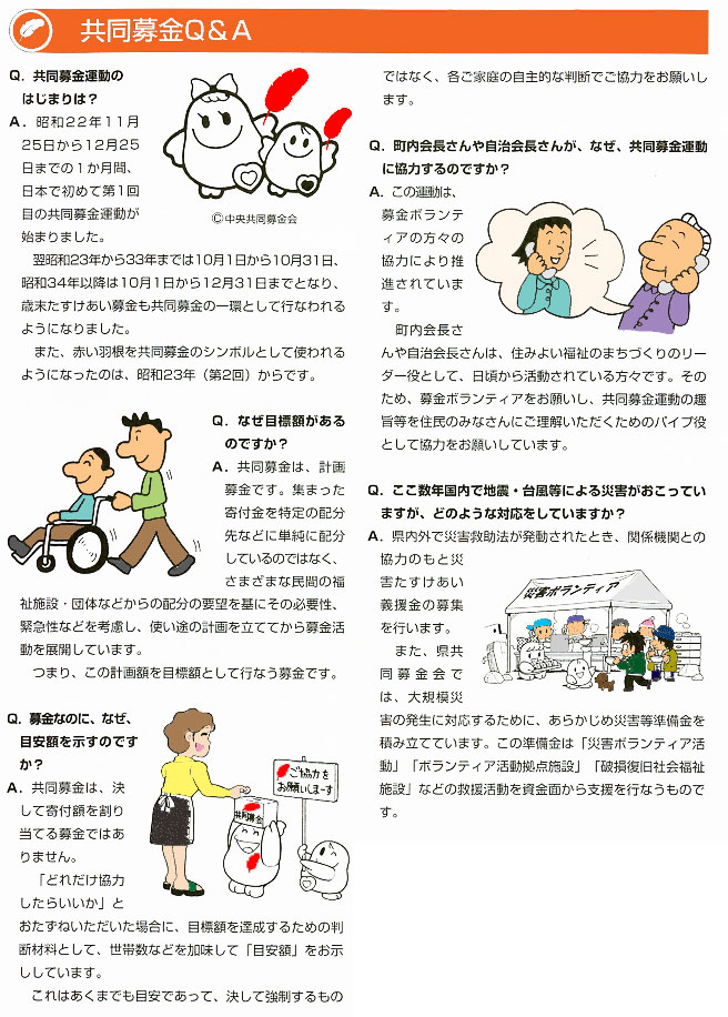 ○共同募金運動とは ○愛知県共同募金会の運動組織 ○共同募金運動の流れ ○共同募金の一年間 ○赤い羽根Q&A ○赤い羽根キッズクラブ(中央共同募金会) 市区町村共同募金委員会 共同募金実績額 ■第77回応募状況 ■書道の部 ○第77回(令和7年度) ○第76回(令和6年度) ■ポスターの部 ○第77回(令和7年度) ○第76回(令和6年度) 共同募金歴年ポスター 共同募金カット集
