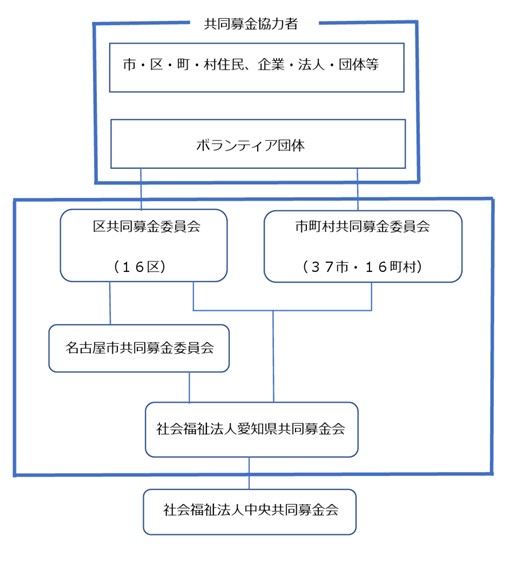 ・県内の共同募金運動を実施するために、市区町村の区域ごとに共同募金委員会(支会・分会)が組織されています。共同募金委員会では、ボランティアの協力を得て、募金や広報活動等を区域ごとに実施しています。